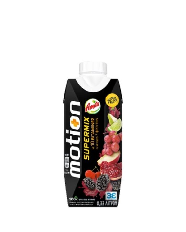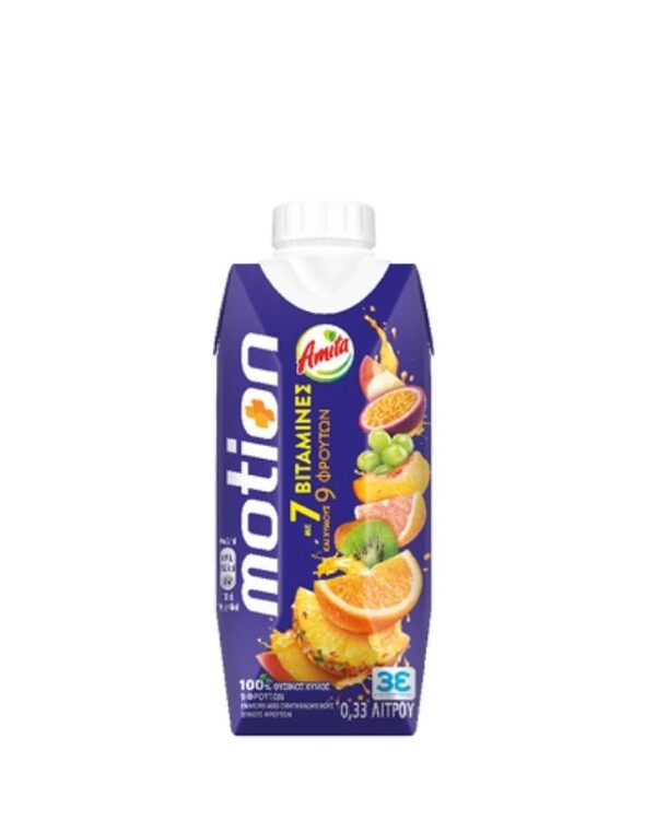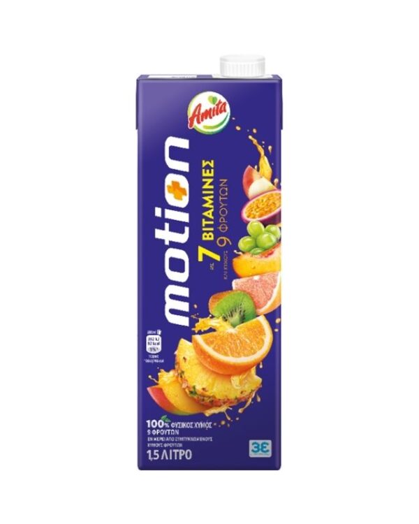 Η Amita Motion είναι ο πρώτος πολυβιταμινούχος 100% φυσικός χυμός με 9 φρούτα και 7 βιταμίνες. Από το 1993 που λανσαρίστηκε στην Ελληνική Αγορά, αποτελεί τον αγαπημένο χυμό των νέων και ξεχωρίζει για τη γεύση και την ποιότητά της. Η Amita Motion αναζωογονεί σώμα και πνεύμα και γεμίζει τη ζωή μας με ενέργεια. Συνδυάζει μοναδικά τη γεύση του μήλου, του πορτοκαλιού, του ροδάκινου, του σταφυλιού, του ανανά, του γκρέιπφρουτ, του ακτινίδιου, του passion fruit και του μάνγκο!